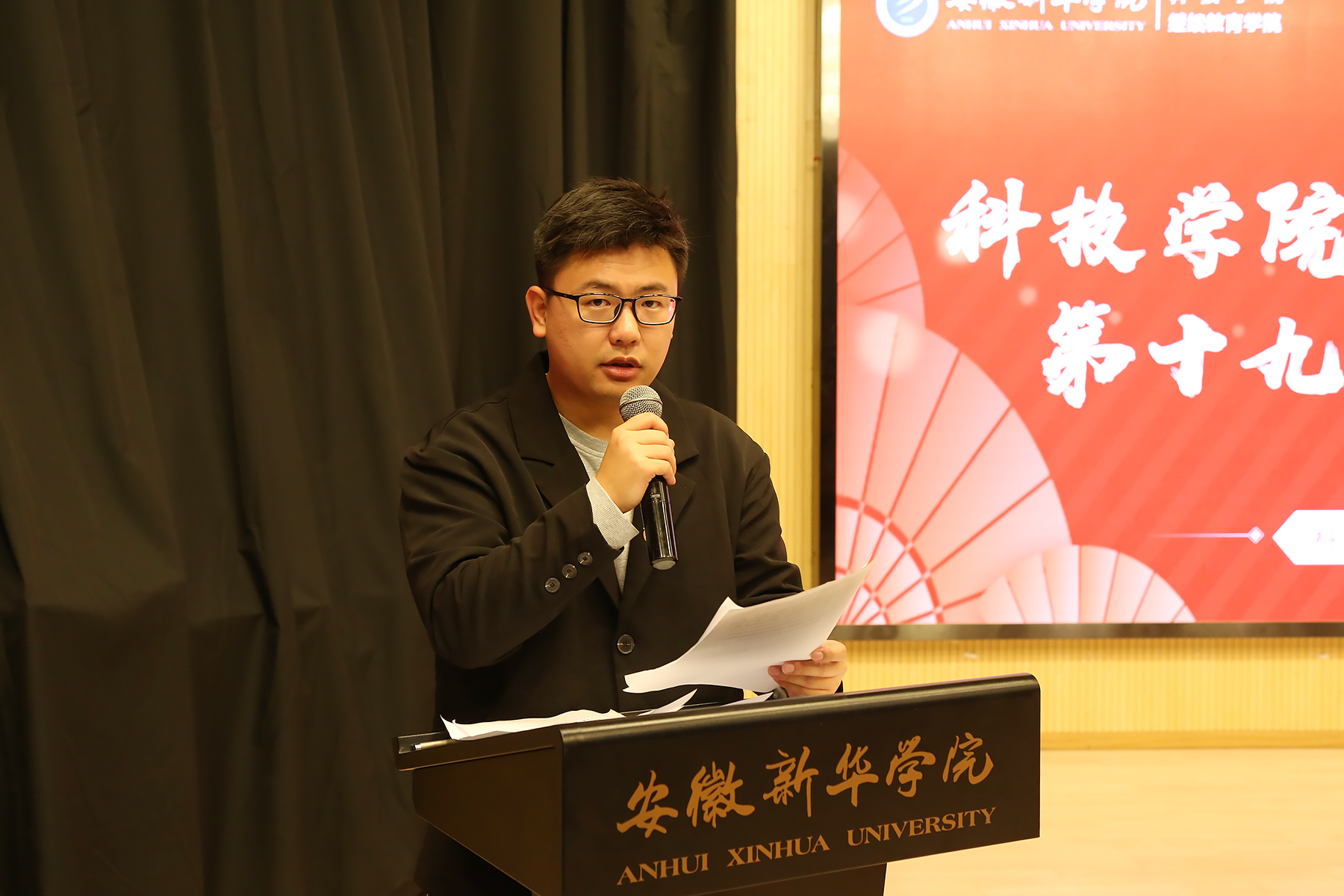 本网讯(通讯员:董涛) 3044am永利集团3044noc科技学院团总支、学生会第十九届换届大会于2021年10月22日中午在文传学院新闻演播厅举办。科技学院党总支副书记、副院长朱向群、3044am永利集团3044noc学生处处长助理计羚、吴山老师、科技学院团总支书记、学管秘书董涛、科技学院辅导员代表出席本次大会。校学生会主席、各二级学院学生会代表、以及科技学院学生会全体成员参加本次大会。