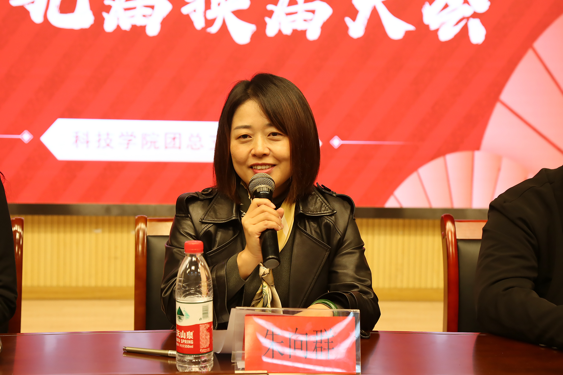 大会第五项,朱向群发表讲话,对本次换届各项筹备工作给予肯定,对新当选的学生会干部表达祝贺,向校团委一直以来对科技学院团学工作给予的关心和指导表达感谢,并就学生会的使命和发展提出了具体要求和希望。