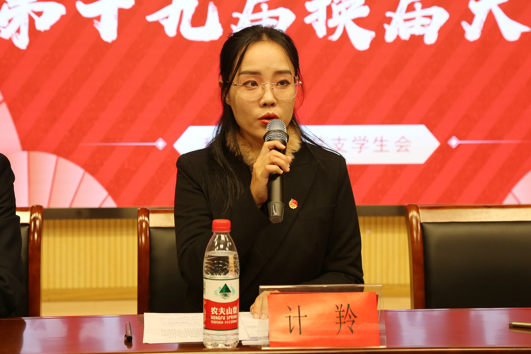 计羚作最后总结讲话,计羚指出学生会作为学院、师生沟通的桥梁,要始终坚持以“全心全意为同学服务”为宗旨,以“自我管理、自我教育、自我服务”为工作理念,秉承求真务实,踏实肯干,无私奉献的优良传统,紧跟时代步伐,锐意进取,开拓创新,积极探索学生工作新思路、新方法,努力开创学校学生工作新局面。
