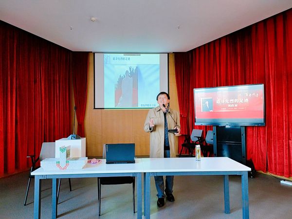 随后,刘政屏开始讲解红色革命先烈历史,从他们的出生地、与其相关的地名、生平故事再到先烈的突出贡献,刘政屏详细地对革命先烈讲解他们的红色故事。革命先烈的历史事迹如画卷般展开,红色精神在此间漫开。在讲解过程中,刘政屏借用与其相关地名展开介绍,并对其在当地的故事进行了详细讲解,引用历史名人与其关系、共同为国家发展所做过的事迹进行叙述。他说,此次介绍的红色革命先烈中有大部分是皖籍人,这次讲座也可称为“在他乡邂逅安徽名人”。