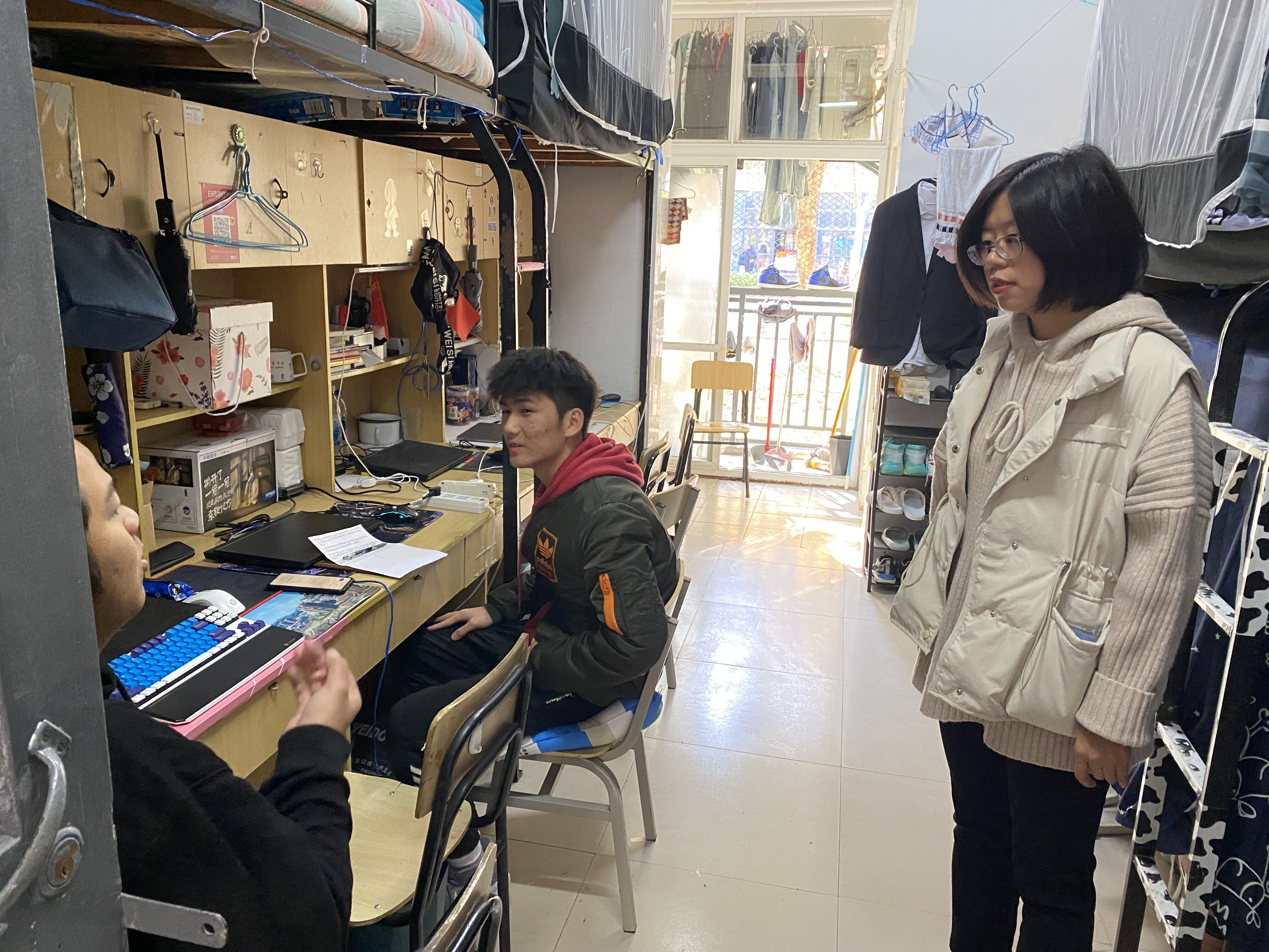 学院全体学工人员针对功率大功率电器、消防通道堵塞、楼道垃圾、各宿舍内部卫生进行拉网式突击检查,对检查过程中出现的问题要求学生及时整改。检查发现,大部分宿舍安全卫生状况良好,学生对于学校安全管理规定遵守程度高,但仍有部分宿舍存在私拉电线、少数宿舍存在桌面有香烟、贵重物品随意摆放等问题,学生安全意识薄弱,隐患较大。院长助理魏高莉指出,公寓是学生在校生活学习的重要场所之一,事关学生,一定要重视,针对有问题的宿舍,要求学生做好整改,同时做好记录,形成纸质材料上报学校公寓管理中心。她强调,要严格规范宿舍内插排的使用,离开宿舍要断电,不能出现私拉电线的行为。