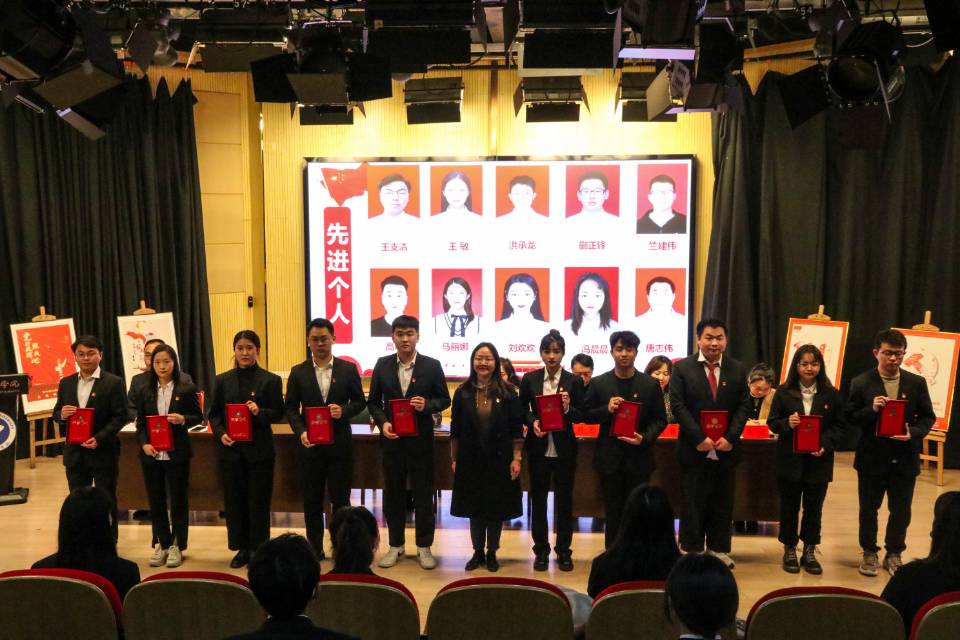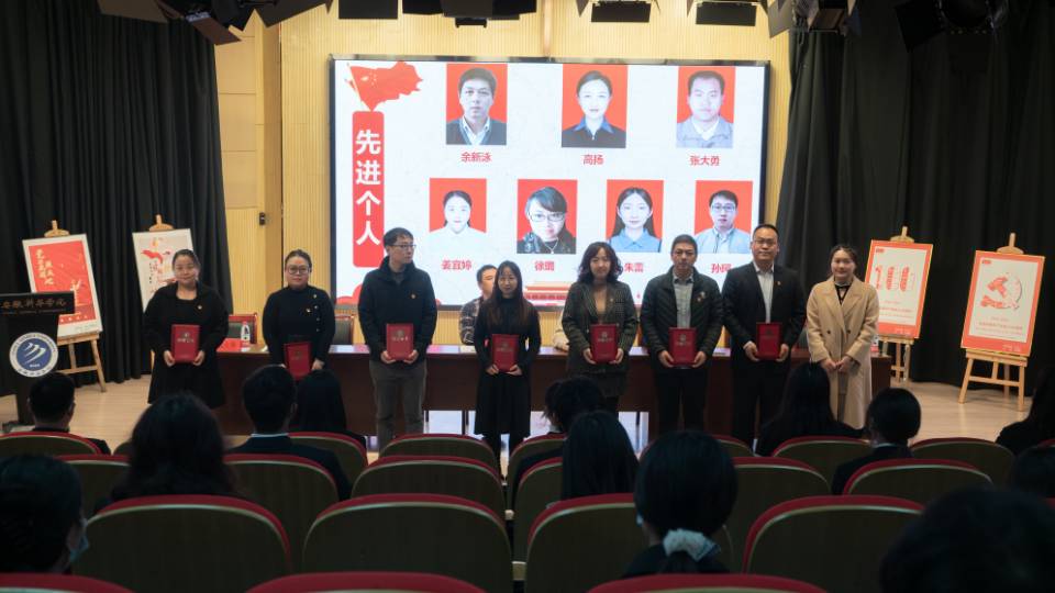 杨雨婷宣读了关于《艺术学院党总支2021年度党建特色活动》先进个人的表彰决定。吴丹和彭智分别为受表彰的同志颁奖。