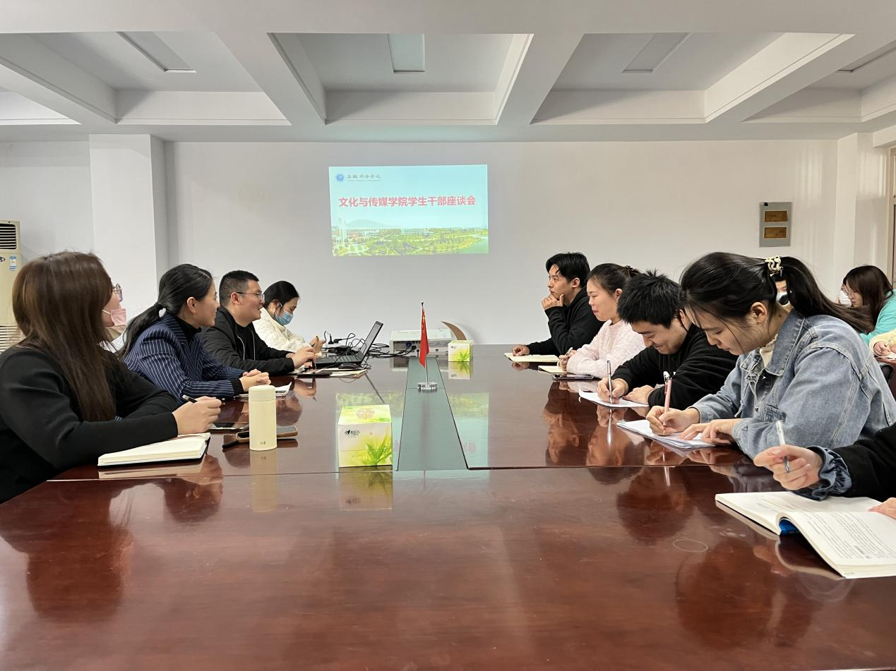 本网讯(通讯员:杨孝艳 摄影:李依静)为进一步提升学生干部素质,充分发挥学生干部带头作用,更好地促进学院发展与进步,11月25日,文化与传媒学院在教八207会议室举办学生干部工作交流座谈会,文传院副院长(主持工作)洪玉、行政副院长罗振林、助理团指导教师宋姣、学生会和团总支指导教师张皖斌出席会议,学生会、助理团、团总支主要学生干部参加本次座谈会。