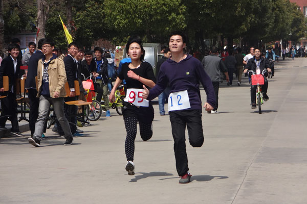 12点30分,环跑华园活动正式开始,100名参赛选手将从翰林广场出发,绕学校主干道环跑一圈,并回到起点处。为了保证参赛人员的多样性,此次参赛选手分别在10个二级学院选出,每院十名,五男五女。随着一声哨响,100名选手像离弦之箭朝前方奔去。来自继续教育学院的王鹏飞、吴洋洋分获男子、女子第一名。吴洋洋是永利官网女子三项全能记录的保持者,在她看来,春天是个明媚的季节,适合运动,希望华园更多的大学生能够加入体育文化节的活动,展现自己的青春与活力。