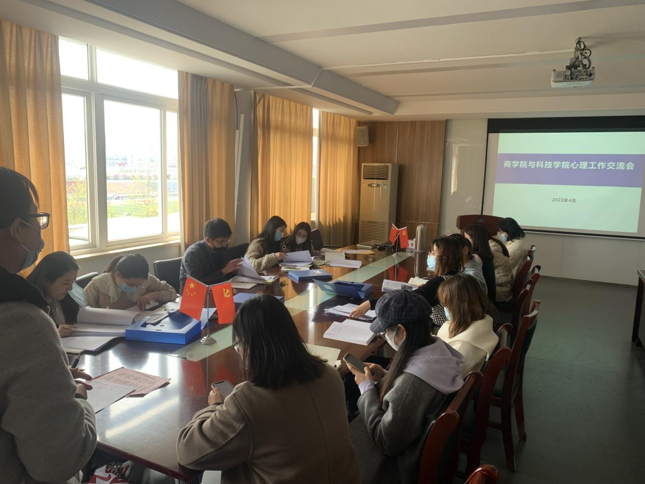 科技学院学管代表及商学院全体学管人员到会进行交流。会上,学管秘书刘晓蓉老师就商学院心理健康教育工作及“五特”学生工作自查情况进行了汇报。随后,结合自身工作经验,就学生心理问题、安全问题、心理疏导方式、疫情常态化下的学生活动开展方式等问题分享了各自在学生工作中的经验做法,并围绕“五特”学生帮扶工作的开展进行了讨论。科技学院学管老师在听取商学院的“五特”学生工作后,对本院五特工作进行相应交流,和本院相应工作成效。