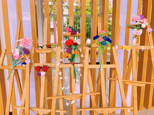 本次活动的带队老师为胡鸿老师,各位入党积极分子均积极参与本次活动。本次活动分为现场教学和视频教学。现场教学由熟练钩花的学生教新手的同学们进行基础起针再钩花,教学内容有钩织郁金香、康乃馨、玫瑰、还有党旗和国旗等。视频教学则由钩花成员创建群聊,在群内推送教学视频,学员可以在寝室完成制作。最终钩花成员在为期半个月的辛苦付出后,在4月16日带着自己的成品于商院东大厅进行评比,将优秀作品予以展出。