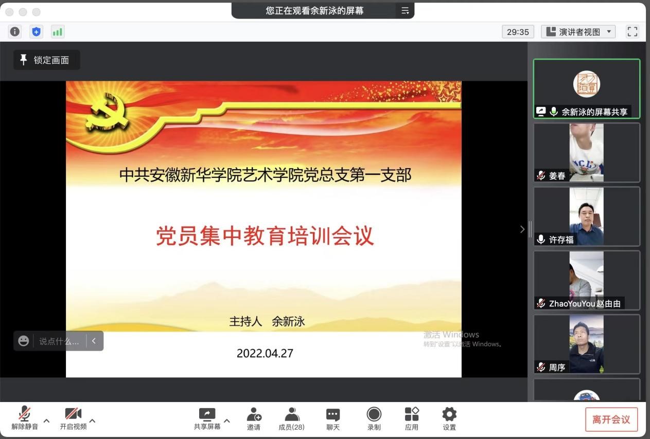 选举工作结束后,艺术学院党总支第一支部在腾讯会议室开展了党员教师“思想政治理论学习”集中教育培训活动,会议由支部书记余新泳主持。党总支书记许存福及全体教师党员出席。