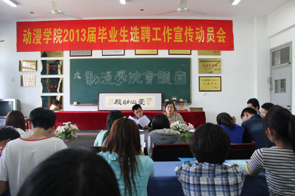 本网讯(通讯员 郑妮)4月16日,动漫学院邀请2013届本科及专科毕业班级符合选聘生条件的党员、预备党员、学生干部返校参加选聘工作动员大会。