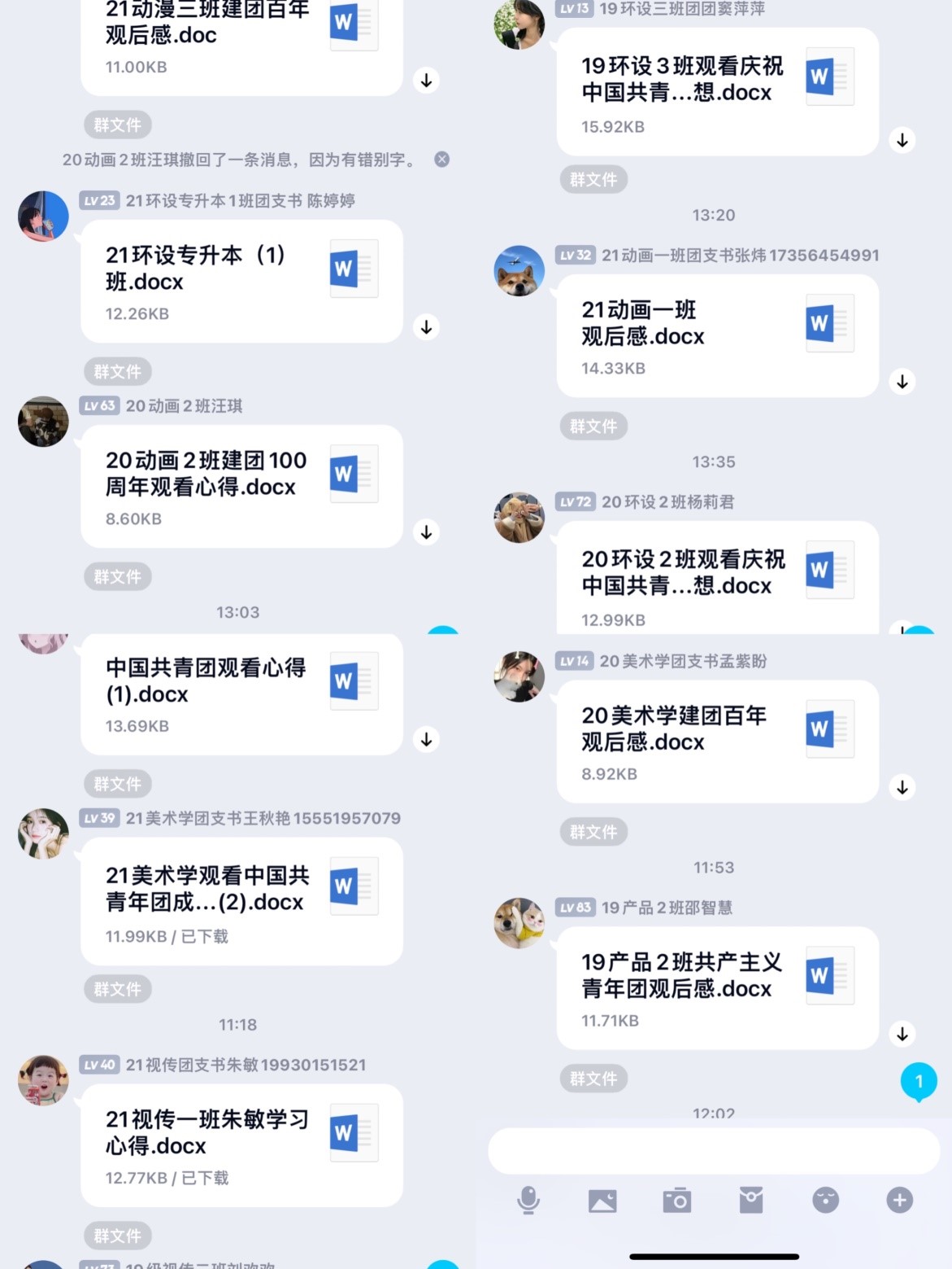 艺术学院团委积极响应校团委号召,组织各班级团干认真观看直播并对会议精神进行记录。习近平总书记在大会上全面回顾了100年来共青团走过的光辉历程。从1919年五四运动到1920年共青团的诞生,1922年共青团第一次代表大会到1949年共青团第一次全国代表大会,中国共青团一直以党的旗帜为自己的旗帜,以党的意志为自己的意志,以党的使命为自己的使命,坚决完成了党交给我们的一切任务并积极发挥自己的优势,为建设新时代中国献出了自身的一份力量。习总书记在大会中提出了对当代青年的殷切希望,和对共青团工作的明确要求。
