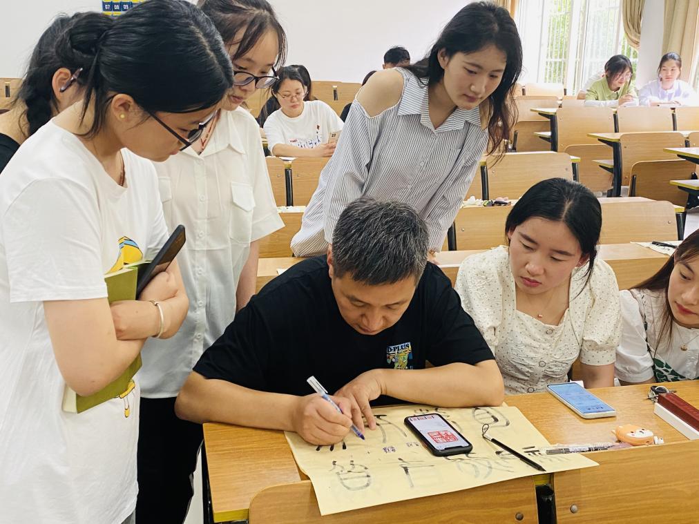 本次讲座共持续了5个半小时,郭刚举教授旁征博引、生动诙谐的语言与精湛的书法、篆刻技艺得到了学生的一致好评。讲座知识点丰富又具有极强的系统性,设置上理论联系实际,且具有极高的专业性和学术性特征,对于学生书法篆刻技法的提高和审美能力的提升,具有直接且持久的促进作用。