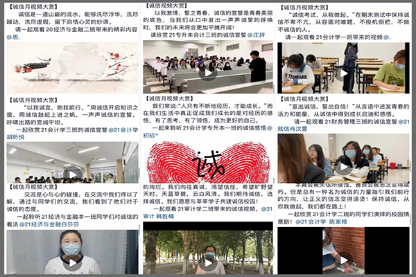 学院开展了“为人信奉诚,见利先思义”诚信主题短视频大赛,形式为情景剧、诚信宣言、诚信故事演绎以及诉说诚信感悟等。在比赛的过程中,进一步强化学生的诚信意识,培养学生的诚信行为、诚信品质。
