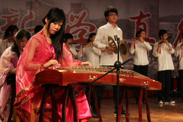 新华学院报讯(学生记者 孙菲菲、虞甜隐)每段音乐都有一个动人的故事,每个音符都是故事中跳动的精灵。4月26日晚,由松欧器乐社举办的第六届民族乐器展览晚会在学校大礼堂华丽上演,给永利官网的广大师生带来了一场东方乐器与西方乐器交融的听觉盛宴。