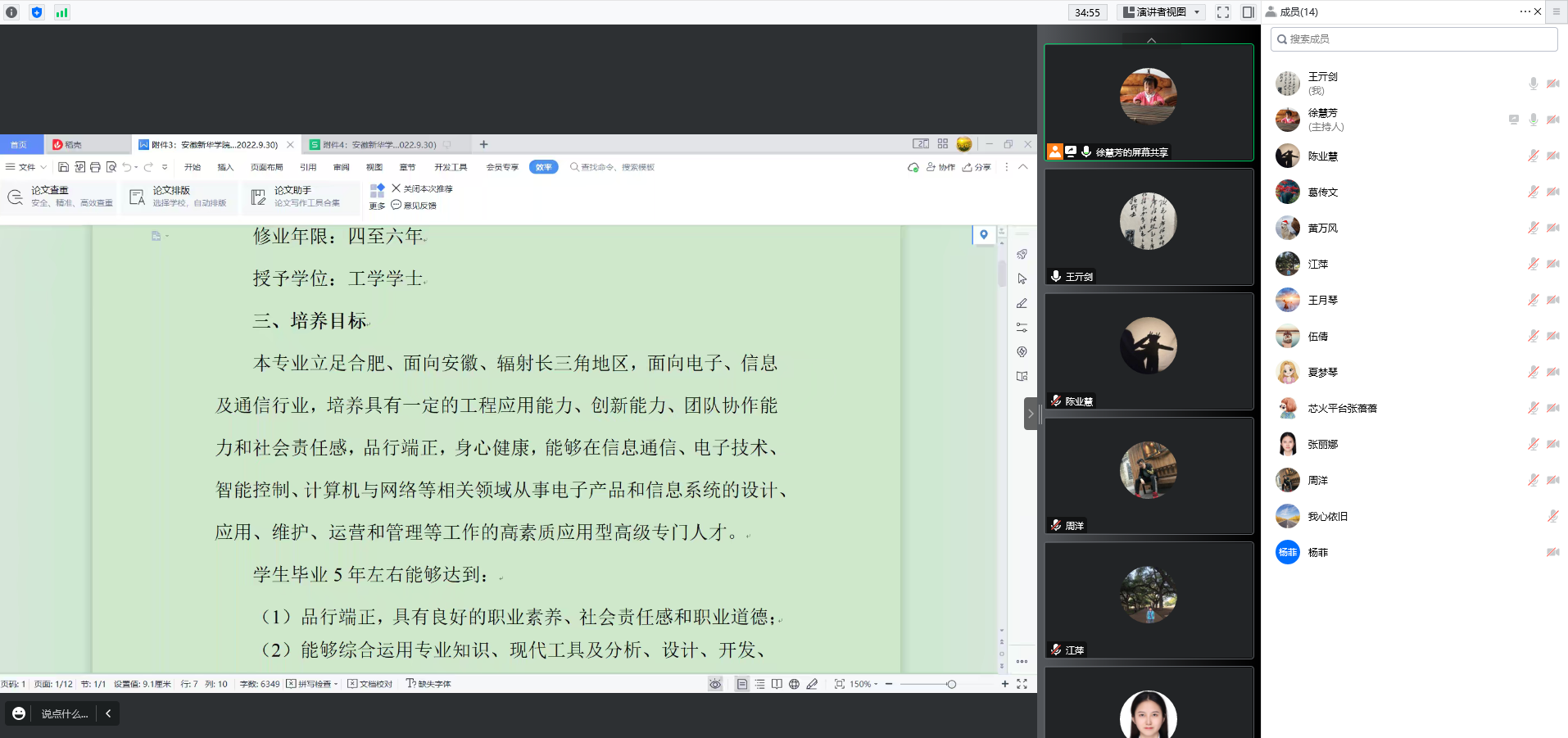 本网讯(通讯员:陈璟)近期电子工程学院/智能制造学院分专业进行了2022版人才培养方案论证会。分别邀请了合肥工业大学教授赵萍、安徽理工大学教授祝龙记、安徽江淮汽车集团股份有限公司高级工程师侯域、安徽省煤炭科学研究院刘欣、安徽巨一科技股份有限公司技术部经理魏小洋等高校及企事业单位专家以线上形式开展了论证。