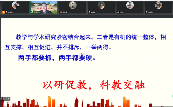 汪晓梦教授首先从充分领悟重大意义、深入学习主要内容、贯彻落实方法路径等三个方面对党的二十大精神进行全面阐释与宣讲,而后围绕高校教师的工作,提出自己独特的见解。汪教授指出,教学是生命,科研是保障;教学是第一要务,科研促进教学能力水平提升;教学与科研要紧密结合,两手都要抓,两手都要硬。要不忘学者的初心,致力于追求学识、学问,求真知;致力于为社会发展服务,为推动社会进步做出贡献。要牢记学者的使命,研究探索事物的本质和规律,提出自己的思想和独立见解,弘扬科学精神和良好的学风,成为时代的道德模范。要做有思想的学术、有学术的思想,反对有学术、无思想。