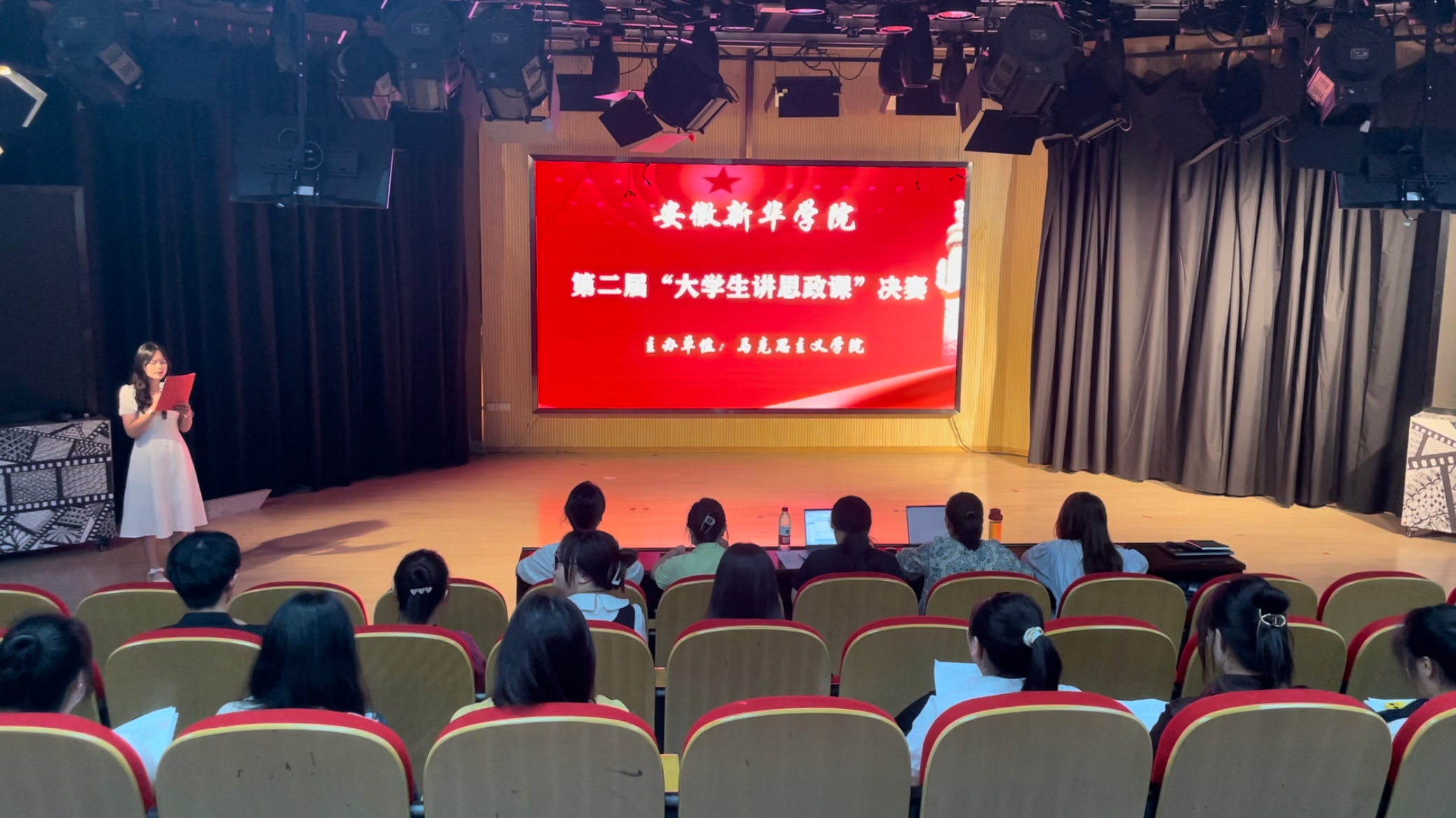 经各二级学院初赛推荐、马克思主义学院视频复赛,最终遴选出28支参赛队伍参与到现场赛决赛环节。活动现场,各队伍就学习贯彻党的二十大精神、推进中国式现代化、“四史”教育、乡村振兴等主题,结合专业特长、典型鲜活的事例进行展示,将思政课教材中的理论与青年学生身边的现实相结合,充分彰显新时代大学生的马克思主义理论素养和精神风貌。评委们根据教学设计、教学内容、教学组织、语言教态、教学特色等方面进行评审打分,充分肯定了大家的表现,认为各位选手准备充分,选题切合实际,彰显了中国特色社会主义制度的显著优势,展现了新时代青年学生的本领担当与志存高远。