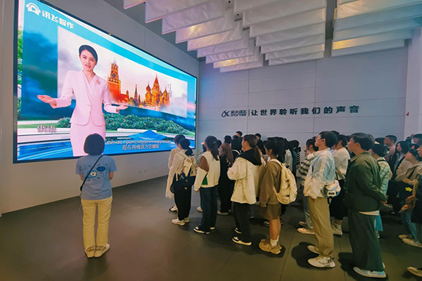 游学过程中,讲解员带领同学们步入科大讯飞人工智能展厅,参观了许多科大讯飞研发的产品,从数字虚拟主播到国礼翻译机,从讯飞扫描词典笔到讯飞智能学习机。系列的产品线体现了科大讯飞在人工智能领域的领先地位和市场优势,也是对于人才培养和技术创新的重视。