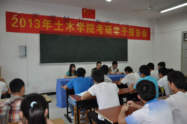 就考研方面,在如何选择学校与专业,如何进行复习备考等问题。李冰和张刚同学结合自已的考研经历,告诫在座的学弟学妹们:要尽早确定考研目标,要注意学校选择,不要好高骛远。在考研准备期间,要端正自己的心态,按照自己的脚步复习,不要急于求成。要广泛的学习知识,要重视高数和英语的学习,通过英语四六级以及获得其他证书都能让自己增色不少。另外,平时要多加了解时政新闻,增加政治理论素养。