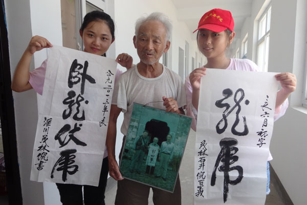 走进茂林敬老院,慰问生活在那的100多位孤寡老人,开展一对一亲情陪伴、慰问演出活动。老人们对大学生的到来十分开心,纷纷拿出零食给大家吃,有的老人还送给队员自己的书画作品。队员们帮老人们整理内务、做家务、揉肩捶背,并与老人们交谈。一对一亲情陪伴结束后,开展慰问演出活动,一些身体残疾的老人不能自己来看演出,队员们背着老人们到达活动室。老人们和队员们一起唱红歌,观看队员们表演的舞蹈、器乐、歌唱等丰富多彩的节目。