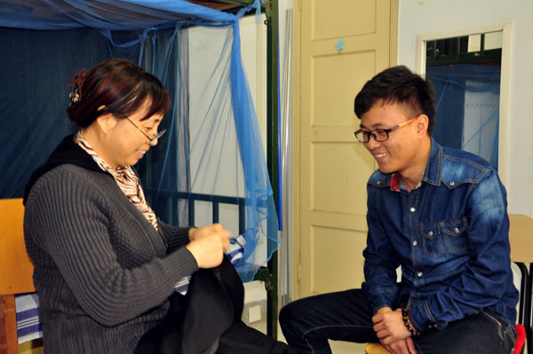 何维英说,如今的大学生十年寒窗苦读,学习成绩呱呱叫,拿起针线却犯了难。在家时感觉不到,离开家这针头线脑的小事儿一下子成了件不大不小的麻烦事儿。曾经宿管阿姨们的几次顺手帮忙,一下子成了洒向学生们的“及时雨”;到现在越来越多不会针线的学生纷纷来寻求帮助,这种爱已成为阿姨们平日里与学生沟通的桥梁。