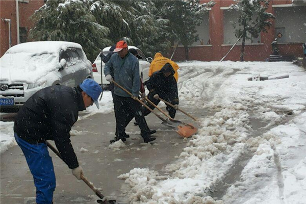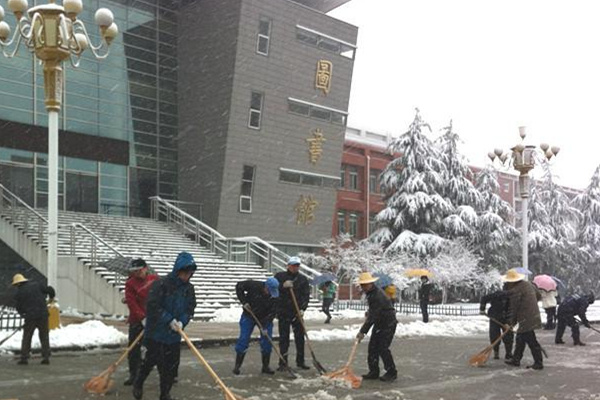 本网讯(通讯员 董梅、洪威)2月17日夜,合肥普降大雪,突降的大雪给师生出行带来诸多不便。为了保证广大师生的出行安全,18日一大早,总务处便组织全体人员分区域清扫校园路面积雪,做好校园主干道及各食堂、开水房等交通要道的路况保障。