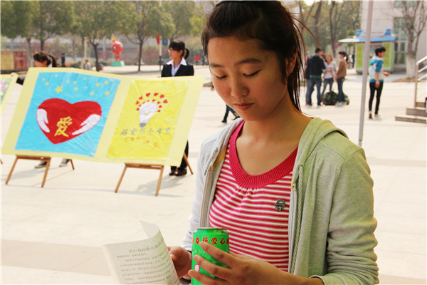 土木与环境工程学院2013级建筑工程技术专业芮程华同学说:“爱心易拉罐能够募集的资金虽然有限,但可以倡议全院师生一起奉献爱心,我们坚信再小的力量也是一种支持。”