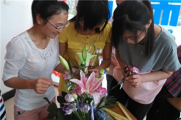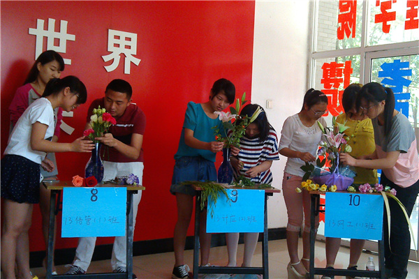 本次活动以班级为参赛单位,自行选定比赛材料,通过团队合作完成插花作品,并为作品取名,向现场师生讲解作品含义。经过一番准备后,各参赛作品纷纷出炉,有表达对老师感激之情的“扬帆远航”,寓意在辅导员老师的教诲下,全班同学积极进取,同学们引用桔梗花的花语真诚的爱,充分表达了对辅导员老师的爱;有表达同窗情的“相遇百合”,寓意一同学习、生活的同学要相互帮助、共同进步;有宣传付出总有回报的“春华秋实”,鼓励所有同学把握最美好的时光,为实现自我价值的未来奋斗;2013级网络技术专业学生设计了“迟到的祝福”为刚刚新婚的辅导员柳老师送上全班同学祝福。