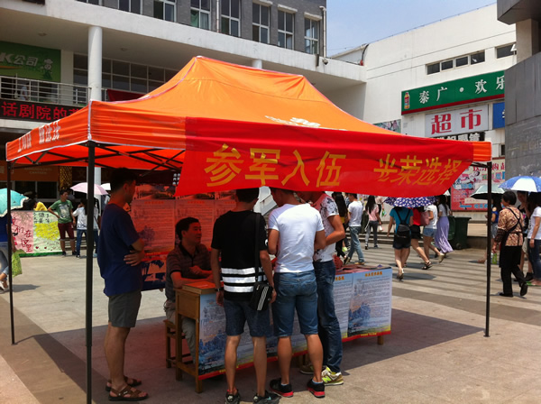 本网讯(李刚)为贯彻落实国防部、教育部联合召开的全国大学生征兵工作网络视频会议精神,切实做好永利官网2014年夏季征兵工作,6月4日,永利官网在翰林广场设立征兵宣传点,为同学们解答入伍相关政策问题。