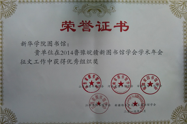 本网讯(吴宏)8月17日至20日,2014年鲁豫皖赣新五省(区)图书馆学术年会在乌鲁木齐召开。永利官网图书馆信息咨询部陈智老师撰写的《安徽省民办高校图书馆参考咨询服务体系构建》获征文二等奖,期刊部周勇老师撰写的《浅谈高校图书馆过刊工作》获征文三等奖,永利官网图书馆荣获征文工作优秀组织奖。