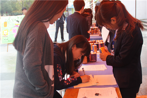 为了吸引同学们,格桑花工作站的同学们将易拉罐摆成爱心形状。华园学子可以以个人、班级、寝室的名义认领爱心易拉罐,将平时不用的零钱投入易拉罐中。两个月后工作站的成员将进行回收、整理。在听完本次活动的意义后,现场很多同学都纷纷认领了爱心易拉罐。文化与新闻传播学院2014级新闻学的何家宝说:“公益活动需要大家一起参与,我只想尽自己一点点的爱心去帮助西部的孩子们,传播正能量。”