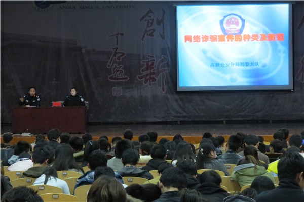 培训会上,李警官详细讲述了网络上存在的10多种诈骗类型,包括中奖诈骗、QQ诈骗、购物诈骗、股票诈骗、网络钓鱼、企业邮箱诈骗、刷信誉诈骗、色情诈骗、购买机票诈骗、“引诱汇款”诈骗、利用任意显号软件诈骗、新型诈骗等,对网络诈骗作案特点和发案原因等进行了分析,并重点阐述了针对不同诈骗类型应采取的防范措施。高新分局刑警大队副大队长王树生通报了近几年网络诈骗的发案情况,用现实生活中的典型案例,向每位参训人员阐述了网络诈骗带来的危害,提醒广大师生增强安全防范意识,提高辨别能力。