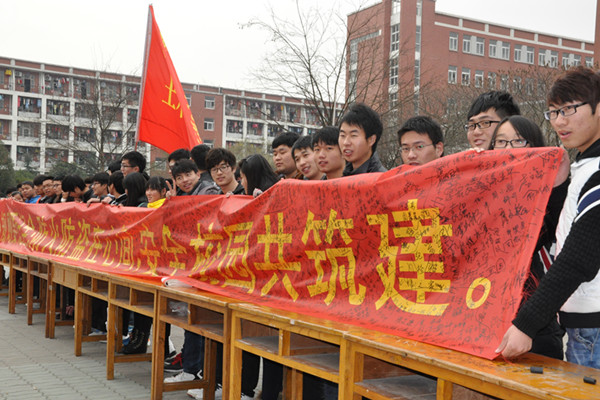 土木与环境工程学院始终强调思想政治教育的针对性、丰富性和实效性,积极开展突出时代精神、健康向上、特色鲜明的主题教育活动,整合教育资源,进一步梳理思想政治教育形式,创新开展了多项思想政治教育活动。一方面通过开展“青马工程培训班”、“我的土木梦·主持人大赛”、“传递正能量·博文写作大赛”等系列主题活动,坚定学生的理想信念,提升他们的思想觉悟;另一方面以“五四”、“七一”、“国庆节”等重大节日、纪念日为契机,加强广大学生的党史和革命史教育,注重分类教育,对学生党员、学生干部、五特学生,开展差异化教育,突出思政教育的针对性,大力弘扬以爱国主义为核心的民族精神,增强学生的民族自豪感和历史使命感。同时,注重开展主题团日活动和礼仪、“诗词竞赛”、优良学风演讲比赛等活动引导学生维护学校的形象和美誉度,激发学生关心学校发展的爱校荣校的主人翁意识。此外,学工队伍牢牢扭住安全稳定工作不放松,实行7×24小时不间断为学生无忧成长快乐学习保驾护航。通过这些主题思想教育,学生爱校情怀进一步提升,参与公益活动和志愿者活动人数显著增加。