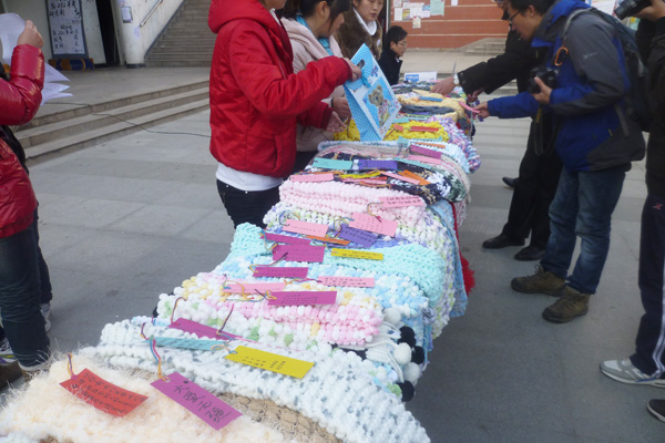 据3044am永利集团3044noc青年志愿者协会会长黄影介绍,从 11月1日起,志愿者们就开始进班宣传织围脖活动。织围脖很有意义,同学们自己买线、自己编织,围脖不仅是一份爱心的传递,也可以锻炼同学们的动手能力。“同学们很积极很感兴趣,男同学尤其热情。男同学基本上不会织,他们都主动向女生请教,我们学校收集的围脖中,男生织得比较多。”黄影微笑着告诉记者。