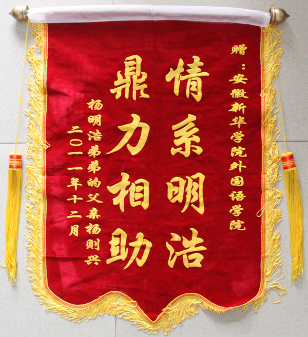 12月21日上午,在外国语学院院长任静生办公室,一位来自池州的学生父亲向任静生赠予锦旗,感谢永利官网师生对他儿子的捐助。
