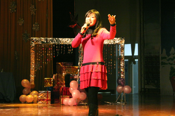 外国语学院的青年老师们也参与了晚会演出,徐晶老师的《爱在天地间》让我们感受了大爱无边,而李圆圆老师的《可惜不是你》更是把我们带入了优美的意境之中。