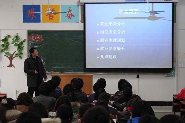 储强胜总经理走进动漫学院多媒体教室,这里早已聚集了很多动漫学院的学生,他谦逊和蔼地向大家问好,并简单地做了自我介绍。储强胜先生为同学们分析了当前国内大学毕业生的就业形势,就业岗位的需求情况,介绍做职业规划的必要性,重点引导同学们亲手为自己做职业规划。他的讲解深入浅出,讲解过程幽默风趣,所举事例耳熟能详,讲座得到了同学们的共鸣。特别是手把手教大家做自己的职业生涯规划这个环节,同学们都觉得很有趣、也很有意义,在动手实践领悟了大学生职业规划的重要意义,也学会了如何规划自己的职业生涯。