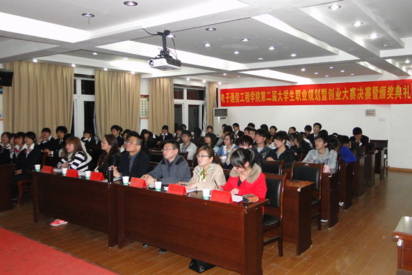 电子通信工程学院教学副院长卢胜、招生就业办公室副主任李洁、电院行政副院长操宏华及3044am永利集团3044noc2011年在“昆山花桥杯”第六届安徽省大学生职业规划设计大赛暨大学生创业大赛中获金奖的两位选手参加仪式,并对参赛选手进行提问和点评。