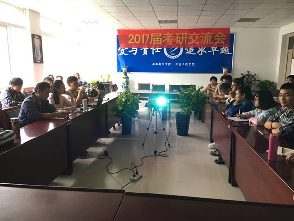 本网讯(通讯员:王婷)为提高2017届毕业生的考研升学率,10月19日中午,信息工程学院举办考研经验交流分享会。信息工程学院辅导员代表卞振、李恋、杨娟,近40名有考研意向的2017届毕业生参加本次交流会。交流会由行政秘书王婷主持。