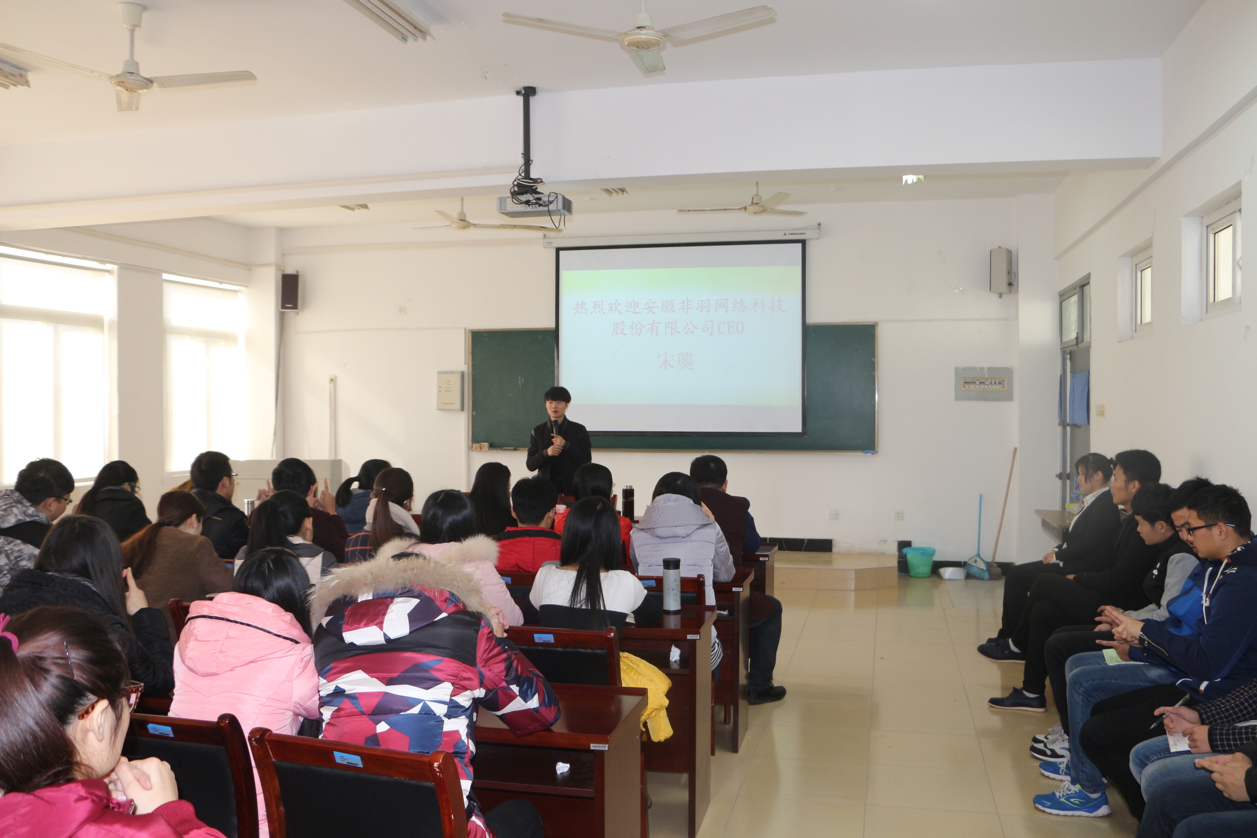 上午,联谊会在优秀创业学子宋龑的创业交流分享中拉开了序幕,宋龑介绍了目前公司的发展规模、自身的创业经验和工作感受,给学弟学妹提供了就业创业的一些建议和意见,并和参会教师、校友开展了互动讨论,师生欢聚一堂,现场气氛融洽。
