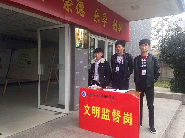 科技学院高度重视此次活动,通过召开班级主题班会、张贴宣传海报、微博QQ推送等形式加大宣传力度,实现宣传全覆盖。以班级为文明创建阵地,充分发挥学生干部的先锋模范作用,将活动任务分解,落实到具体责任人身上,实施文明创建活动进学院、进班级、进宿舍“三进”制度。