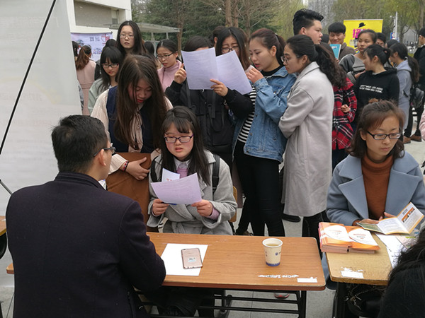 本网讯(通讯员:马兰)为切实做好2017届毕业生就业工作,3月18日下午,外国语学院举办2017年春季首场招聘会,来自广州、深圳、武汉、芜湖、合肥五地的10家用人单位、2017届180余名学生参加了此次招聘会。