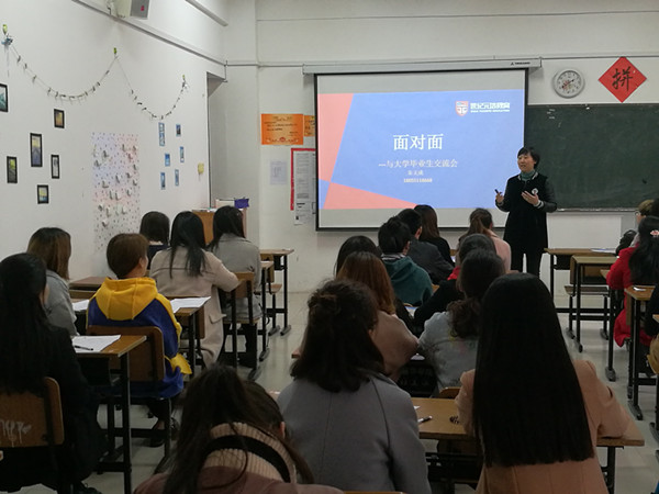 招聘会上,毕业生积极主动与用人单位针对应聘要求、职业发展规划、薪资待遇等问题进行深入交流。外国语学院副院长周景带领行政秘书和毕业班辅导员老师积极主动与用人单位沟通,了解单位用人的标准和需求,探讨毕业生的就业取向及职业理想。