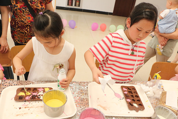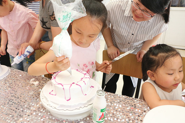 活动现场十分热闹,小朋友在父母的帮助下,用自己的想象力创造出了各种各样属于自己的节日蛋糕,并自己动手制作巧克力送给父母, 更有许多小朋友为家长们表演舞蹈、歌曲等节目。
