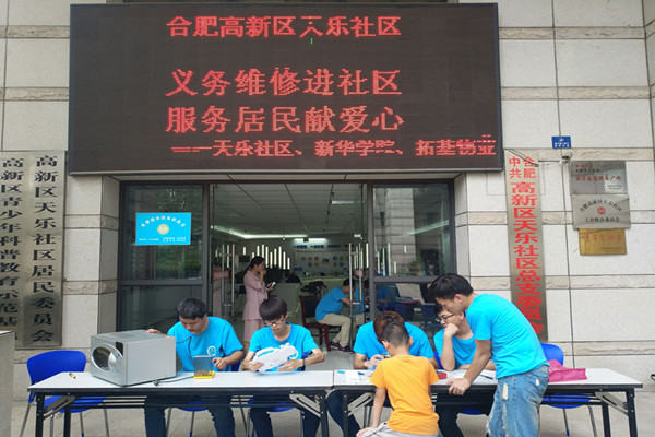 在社区居民的互相宣传下,越来越多的人陆陆续续地拿来了需要维修的电器。志愿者们有的负责登记信息,有的负责检查问题,有的进行维修。他们专心致志地工作着,不仅做好电器的维修,还向居民们介绍电器使用的注意事项。直至下午6点,义务维修活动结束,他们一共为社区居民维修了30余件小家电,受到了居民们的一致好评。