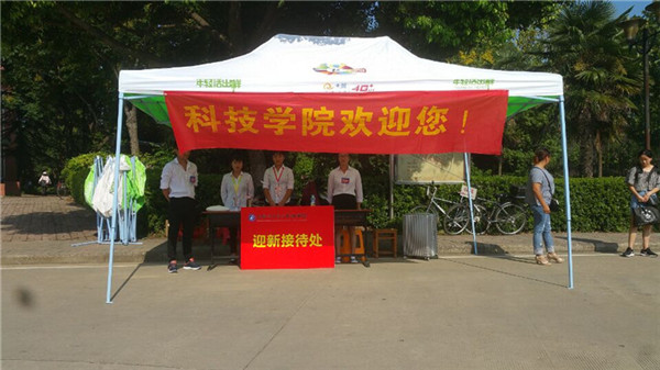 按照迎新方案,今年科技学院在发放新生录取通知书的同时一并发放入学指南,明确新生入校需要办理的手续,公布各项事宜和咨询电话。新生报到日,科技学院在学校北大门设立引导服务台,帮助新生完成报到。同时,科技学院执行院长黄德垚带领全体管理人员来到报到现场,引导新生办理各项报到手续,现场解决同学们的疑问及困难。学生会助理团成立“迎新生志愿服务队”,用学长学姐的热情、志愿者的爱心去迎接每一位新同学的到来,从报名处到公寓楼,处处涌动着他们忙碌的身影,拉皮箱、搬行李、找宿舍,忙得不亦乐乎。