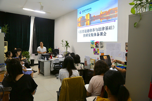 本网讯(通讯员:代长彬)为贯彻落实教育部长陈宝生关于“打一场提高高校思政课质量和水平的攻坚战”讲话精神,解决好思政课教师的内功问题,9月8日,思政部组织《思想道德修养与法律基础》课教研室全体专兼职教师进行集体备课,对一些重大现实问题、重要理论成果予以深化,以期为2017级学生呈现精彩的首堂大学思政课。
