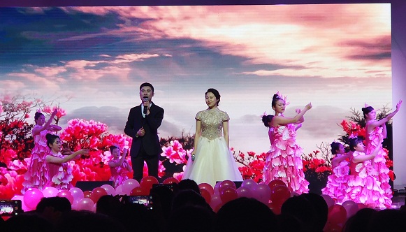 外国语学院教师郝亮、李宏林带来的歌曲《在此刻》点燃了全场观众热情,将晚会气氛推向了高潮。