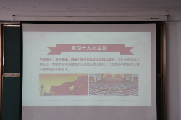 江瑶作《中国特色社会主义进入新时代——学习贯彻党的十九大精神》主题报告。报告深入浅出地传达了党的“十九大”重要精神,她结合改革开放以来国家的发展,重点解读了习近平新时代中国特色社会主义的思想内涵、基本方略、特殊重大意义和丰富内涵、两个一百年奋斗目标的战略部署、我国经济社会发展重大战略部署、坚定不移推进全面从严治党、过去五年的历史性成就和历史性变革、我国社会主要矛盾的变化等几个方面。主题报告理论联系实际,内容全面,切合实际。与会教师党员纷纷表示宣讲是进一步贯彻落实十九大精神的重要辅导报告和高规格党课,作为教师,一定会在十九大精神引领下,专心教育,努力创新,争取更多教学科研成果。