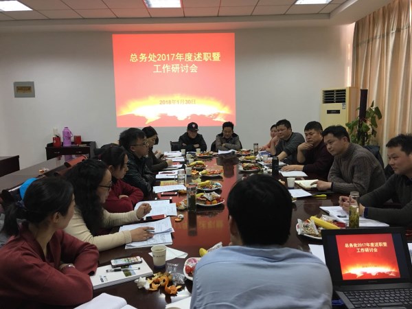 本网讯(通讯员:董梅)为总结部门2017年度工作,积极有效地推进2018年度各项工作的开展,1月30日下午,校总务处2017年度述职暨工作研讨会在招生办会议室召开,副校长朱兆健出席会议并作指导讲话,总务处全体行管人员参会。本次会议由总务处处长陈义盛主持。