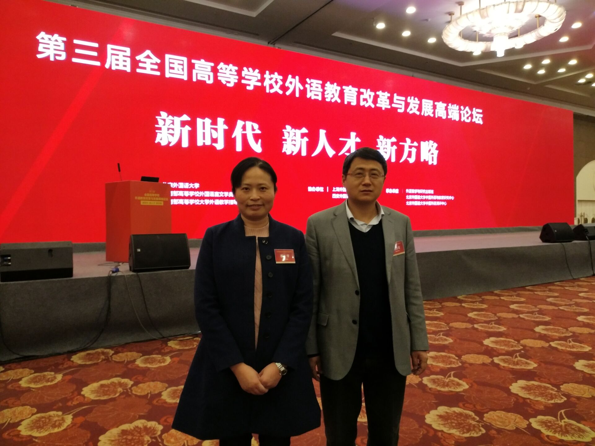 本网讯(通讯员:崔芳、马兰)3月24日,第三届全国高等学校外语教育改革与发展高端论坛于在北京开幕。2000余位高校校长、外语教育专家、学者、教学管理者与一线教师云集论坛,共谋中国高等外语教育改革与发展新时代大计,同书中国高等外语教育改革与发展奋进之笔。永利官网外国语学院副院长王志宏、公共英语教学部副主任崔芳应邀参加此次论坛。