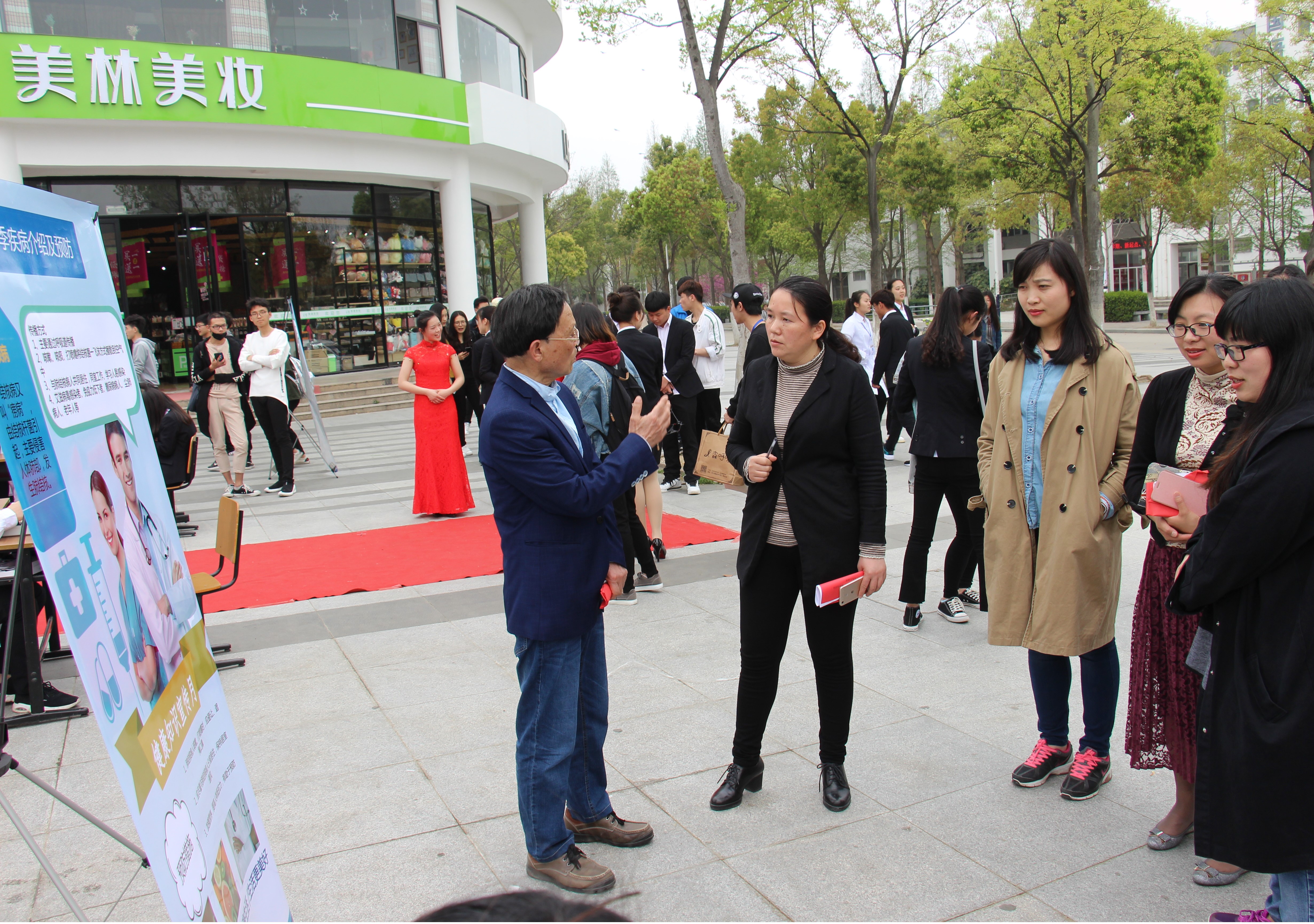 药学院精心设立了健康问诊台、器材展、药材展、预防结核病图展、花茶品尝、万人签名等多个活动展区。